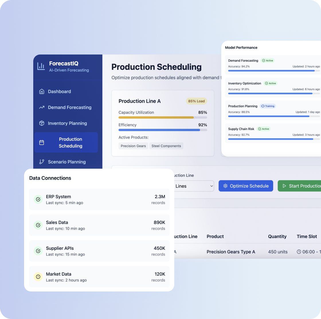 A ML-enabled service that improves forecasting accuracy, optimizes inventory levels, and enhances production agility by modeling real-world demand and supply dynamics